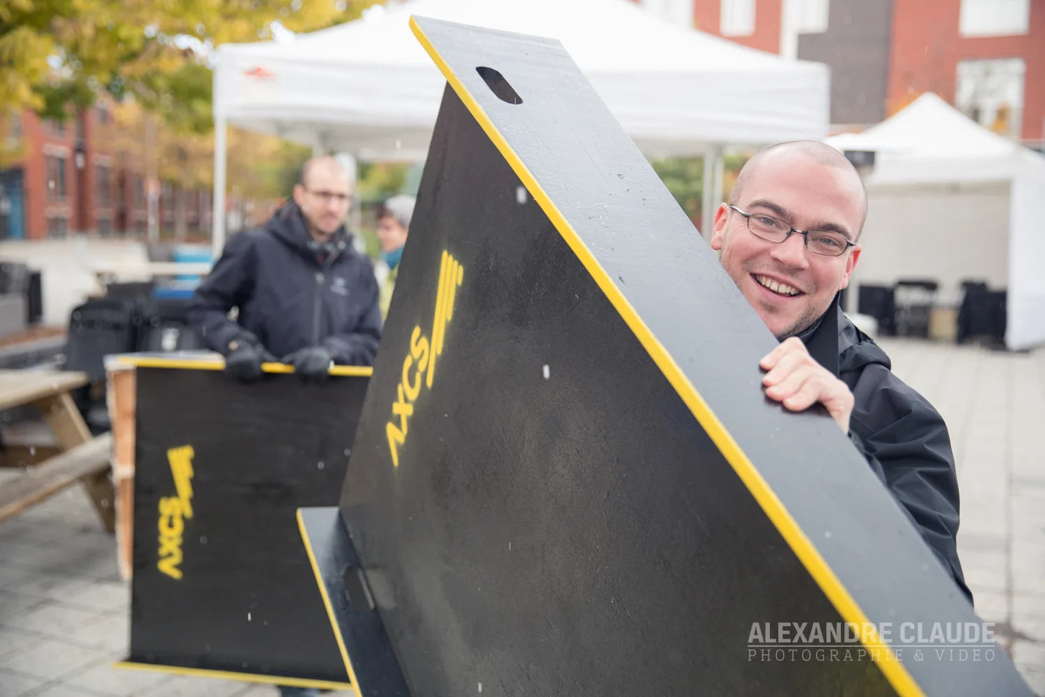 Samedi le 18 octobre, une conférence de presse a été organisée en plein coeur de la place Valois, à Hochelaga, pour souligner l'installation des 15 premières rampes dans le quartier. Des représentants des commerces locaux, des élus ainsi que le fondateur d'AXCS, Martin Beauregard, se sont adressés aux citoyens et journalistes qui s'étaient déplacés pour célébrer ce qui représente le début de l'accès universel à Hochelaga.