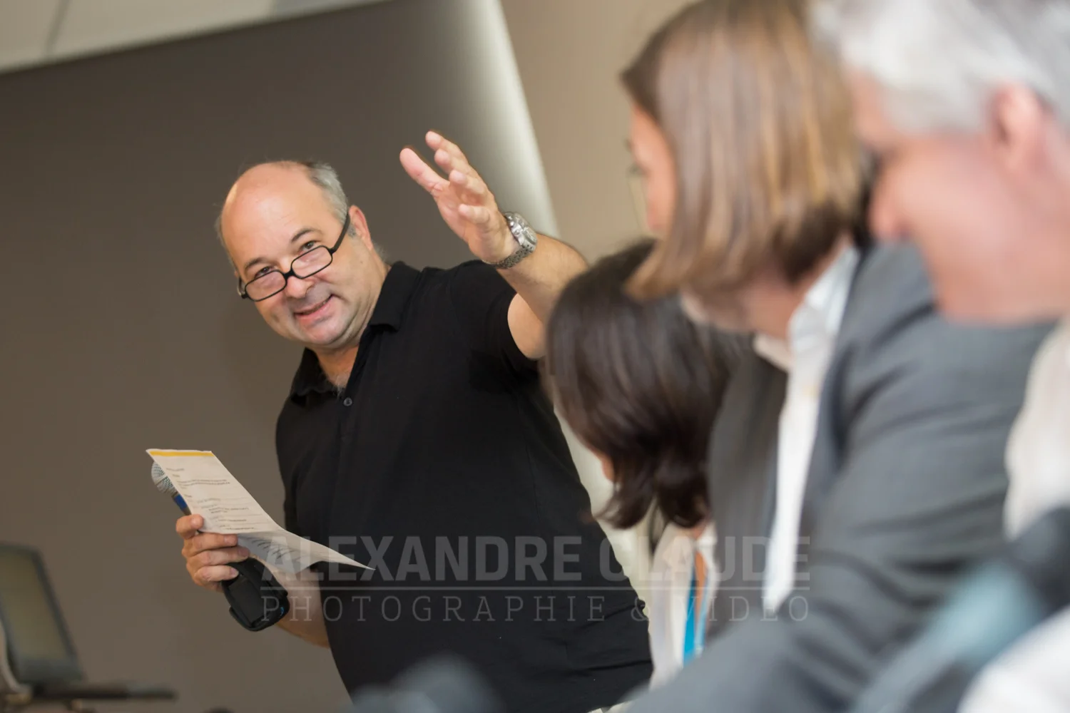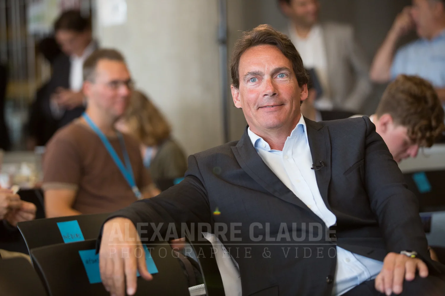 Pierre-Karl Péladeau à rencontré des participantes et participants à l'École d'été de l'INM.