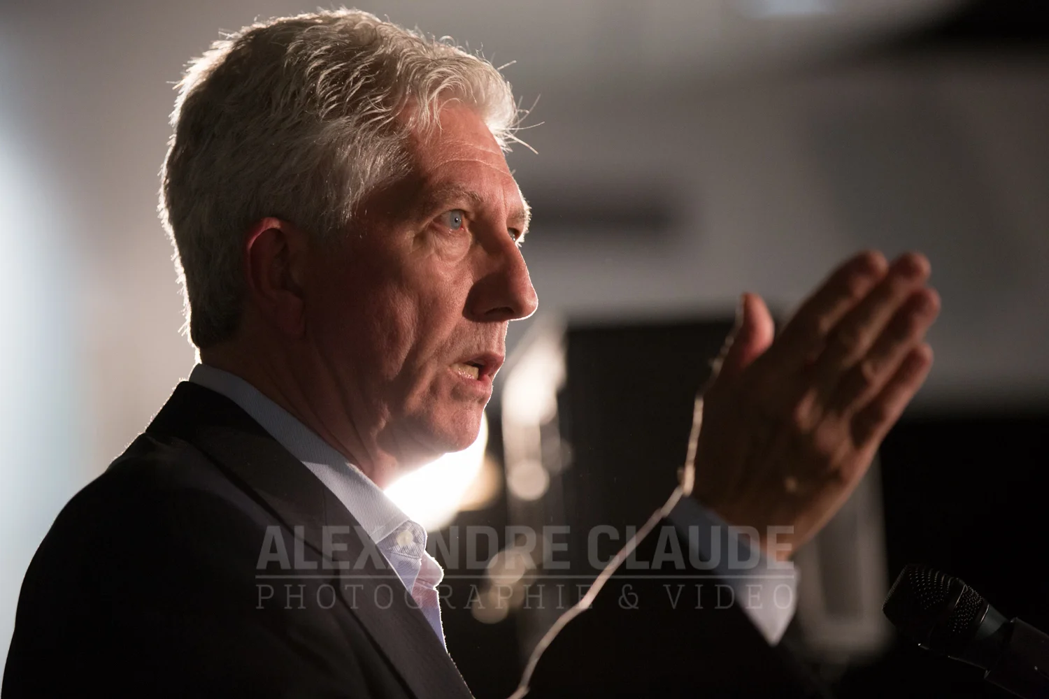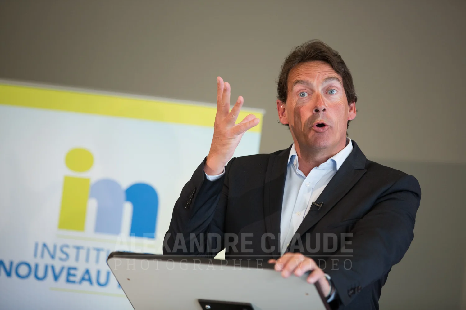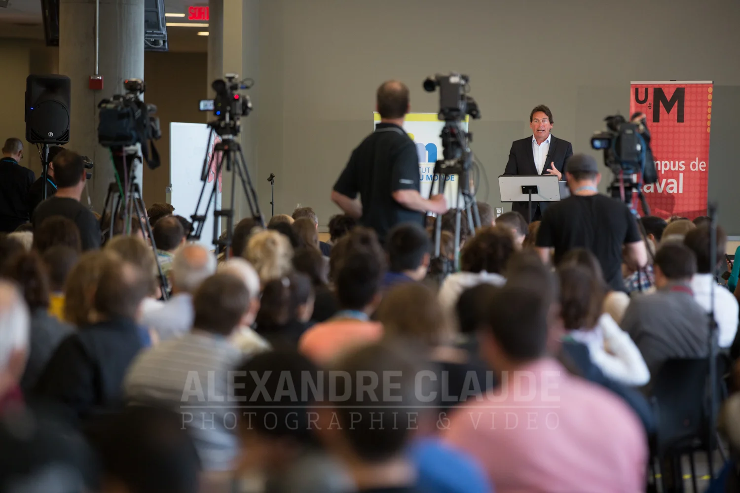Pierre-Karl Péladeau s'est adressé à une salle comble dans le cadre de l'École d'été de l'INM.
